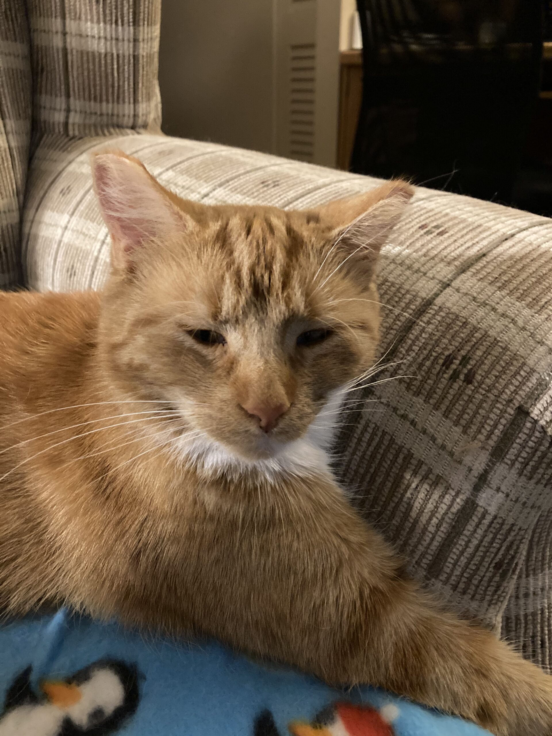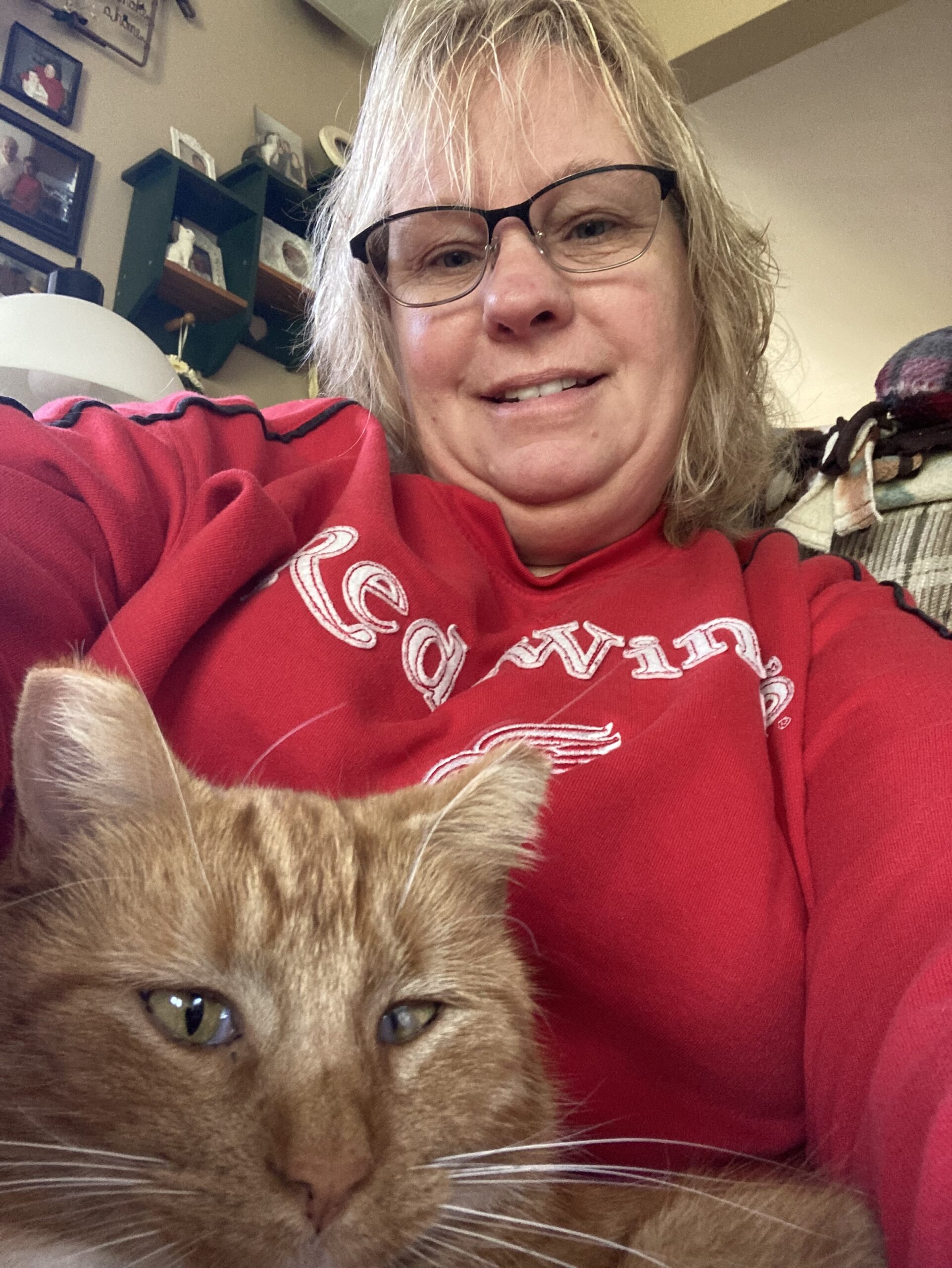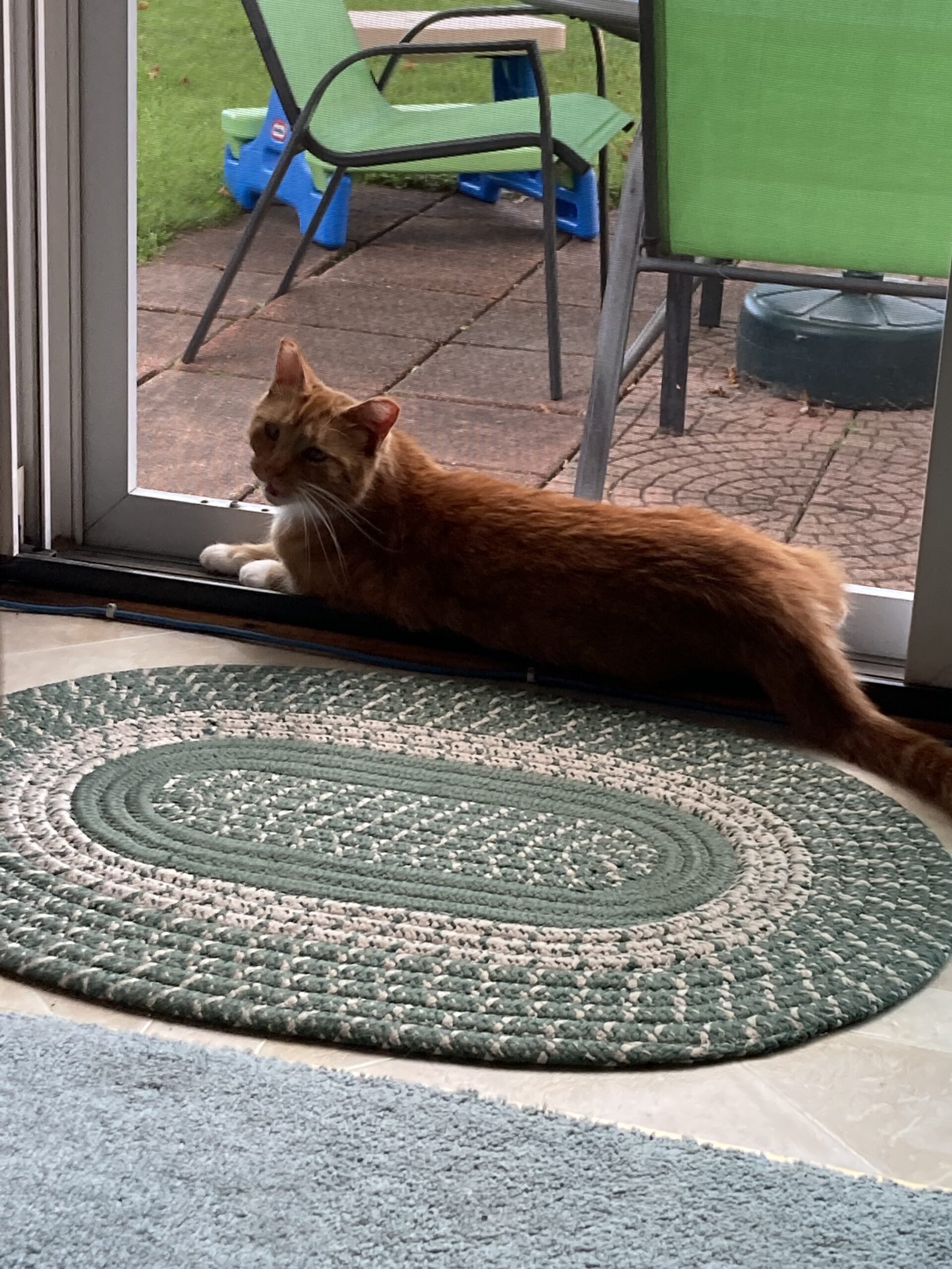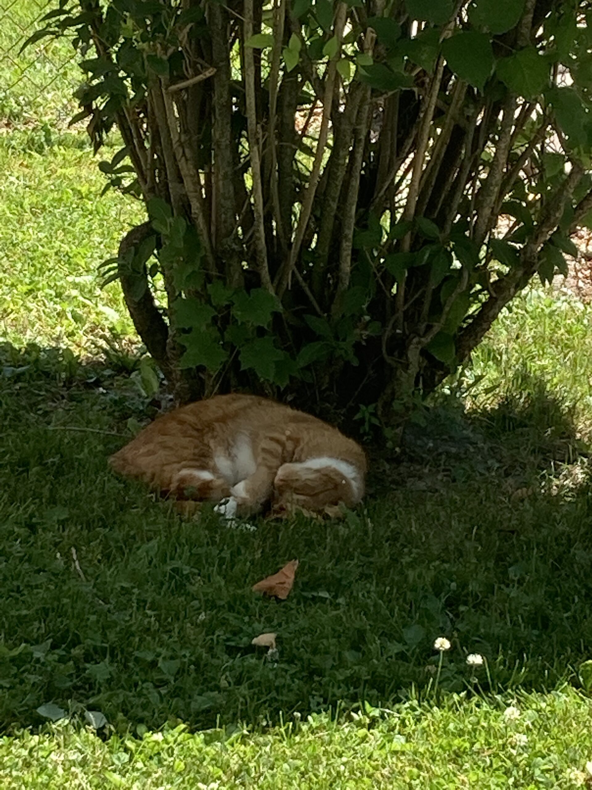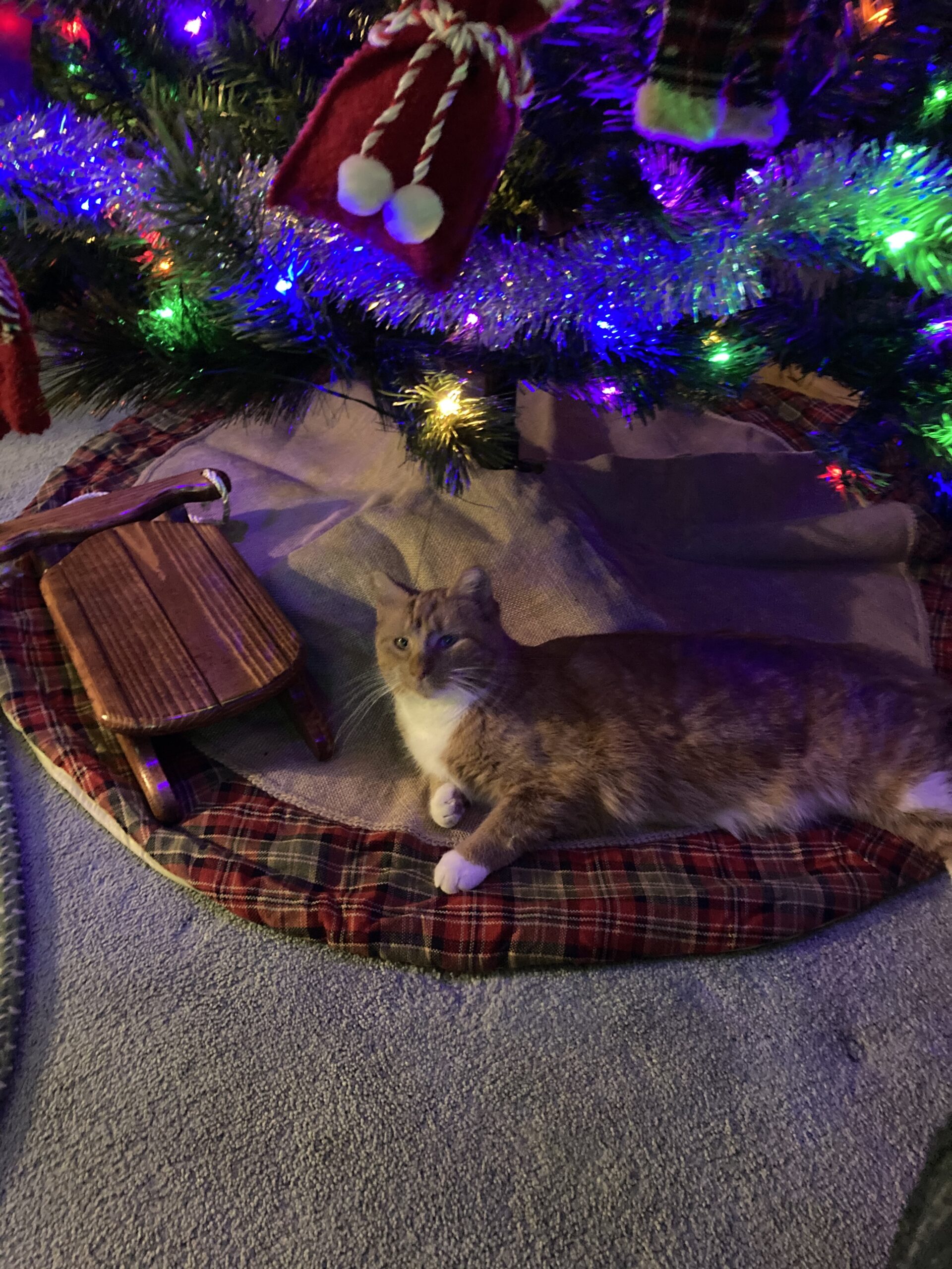 Pumpkin was a stray cat. We had just arrived home from driving to Florida to get my mom after having a stroke. Pumpkin would hang out in our driveway. I have her chicken and tuna. She devoured it like she hadn’t eaten in a long time. This kind of feeding went on for month. We originally thought that Pumpkin was a boy. She was very skittish. She wouldn’t let us get too close. We would prop our screen door open so she could come and go as she liked. Slowly, she would get closer and would rub against our legs and let us pet her. We had to keep the door open all the time. One night she jumped up on the couch next to me, lay down, and let me pet her. After several weeks of doing this and the weather getting colder, I asked my husband if she could stay in the house that night. He said no. A while later, my husband fell asleep in the recliner. I woke him up and told him to go to bed. The minute his foot hit the hallway, I looked at Pumpkin and said, “Guess who’s staying in the house tonight?” She stayed on the couch all night. She stayed every night during the winter months. She would go outside during the daytime and come back in the evening. I took her to the vet and found out our Pumpkin was a girl. I had her chipped. She was now mine. I am allergic to animals. For the past 5 1/2 years, I have been taking an allergy pill every day just so I can be with my Pumpkin. She would come inside in the evening and jump up on my lap. If I was playing on my iPad, she would do anything she could so that I couldn’t see what I was playing on it. Sometimes she would lay so high on my chest, that it looked like I was wearing her for a scarf. The other day, she didn’t come home in the morning to eat. I called for her over and over. We were backing out of our driveway; I looked behind the bushes in the front yard where she lays sometimes. I thought I saw her legs, so I pulled forward to get a better look. Sure enough, I saw her legs. I got out of the car and walked over to where she was. I called her name and she didn’t move. As I got closer, I could see a bunch of ants on her eyes. I yelled for my husband. I tapped her with them foot, she was stiff. This was so upsetting. I thought my baby girl would be around forever. We miss her so much. I keep wanting to get up and see if she’s waiting at the back door. Or, if she’s laying in the garden. Pumpkin girl, rest in peace. Some day we will be together again. We love you and miss you so much.