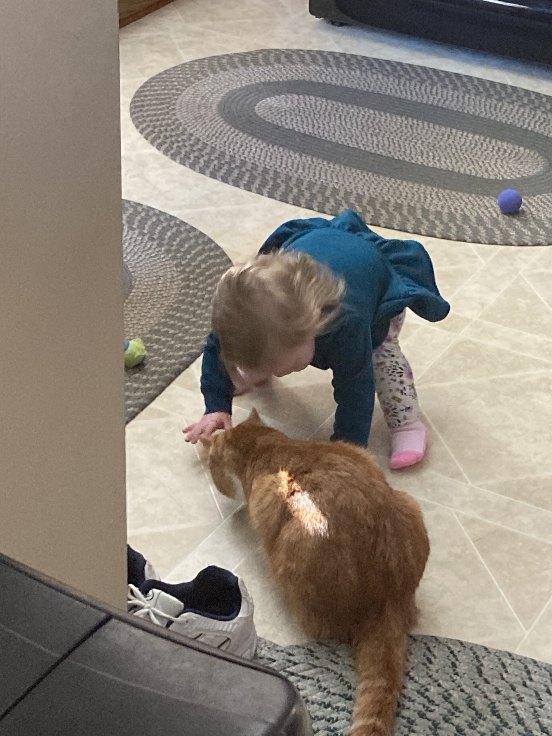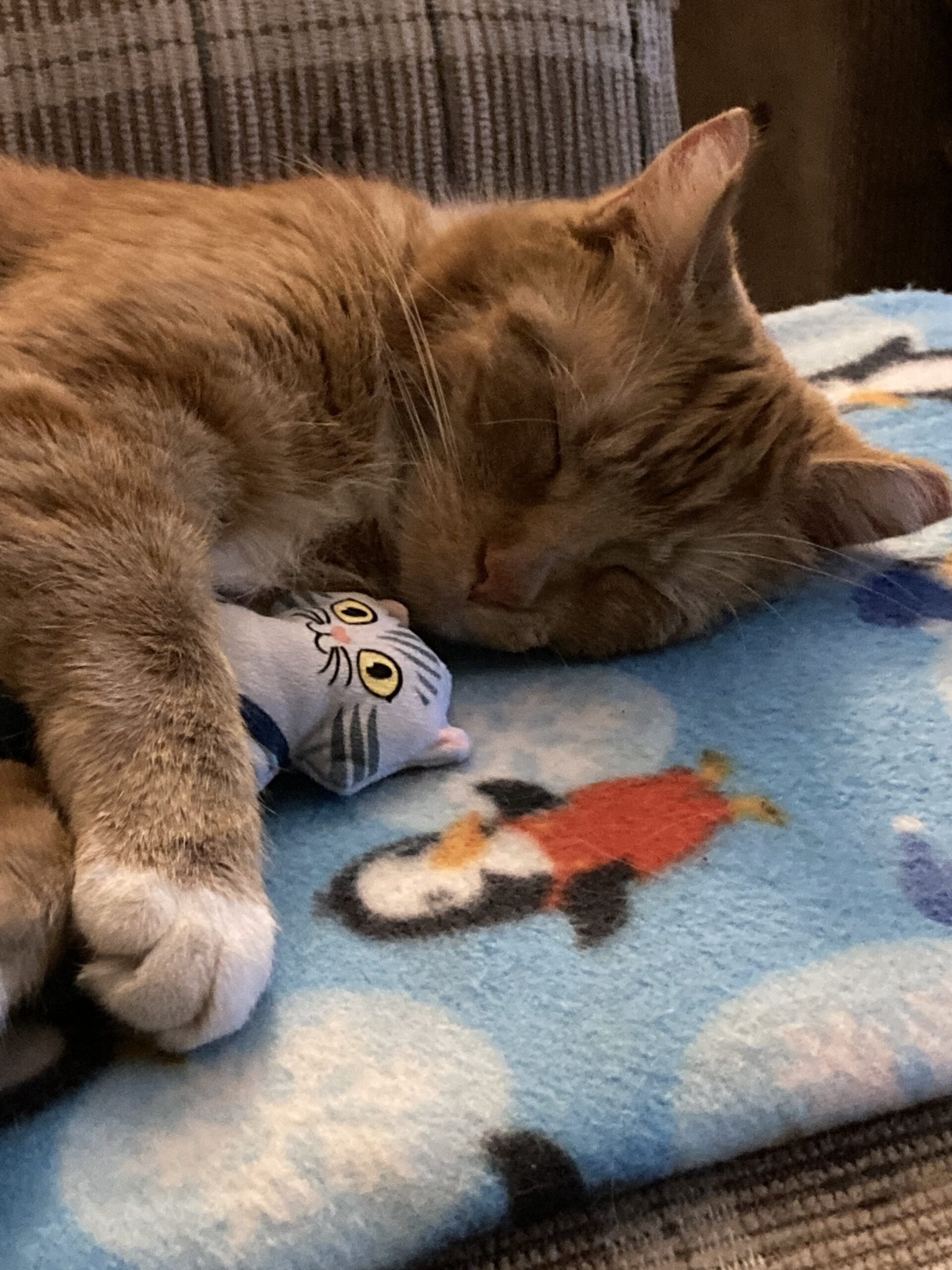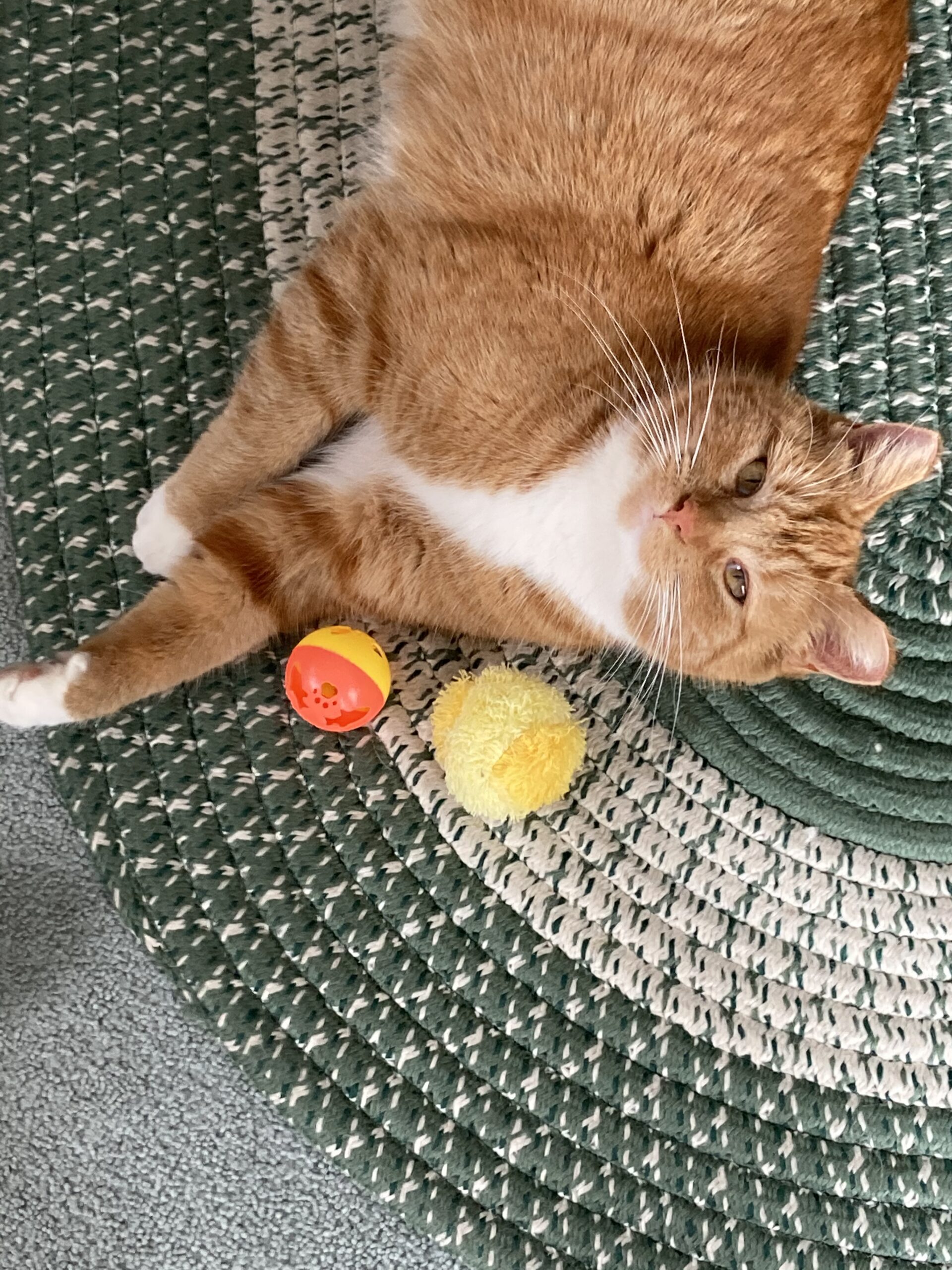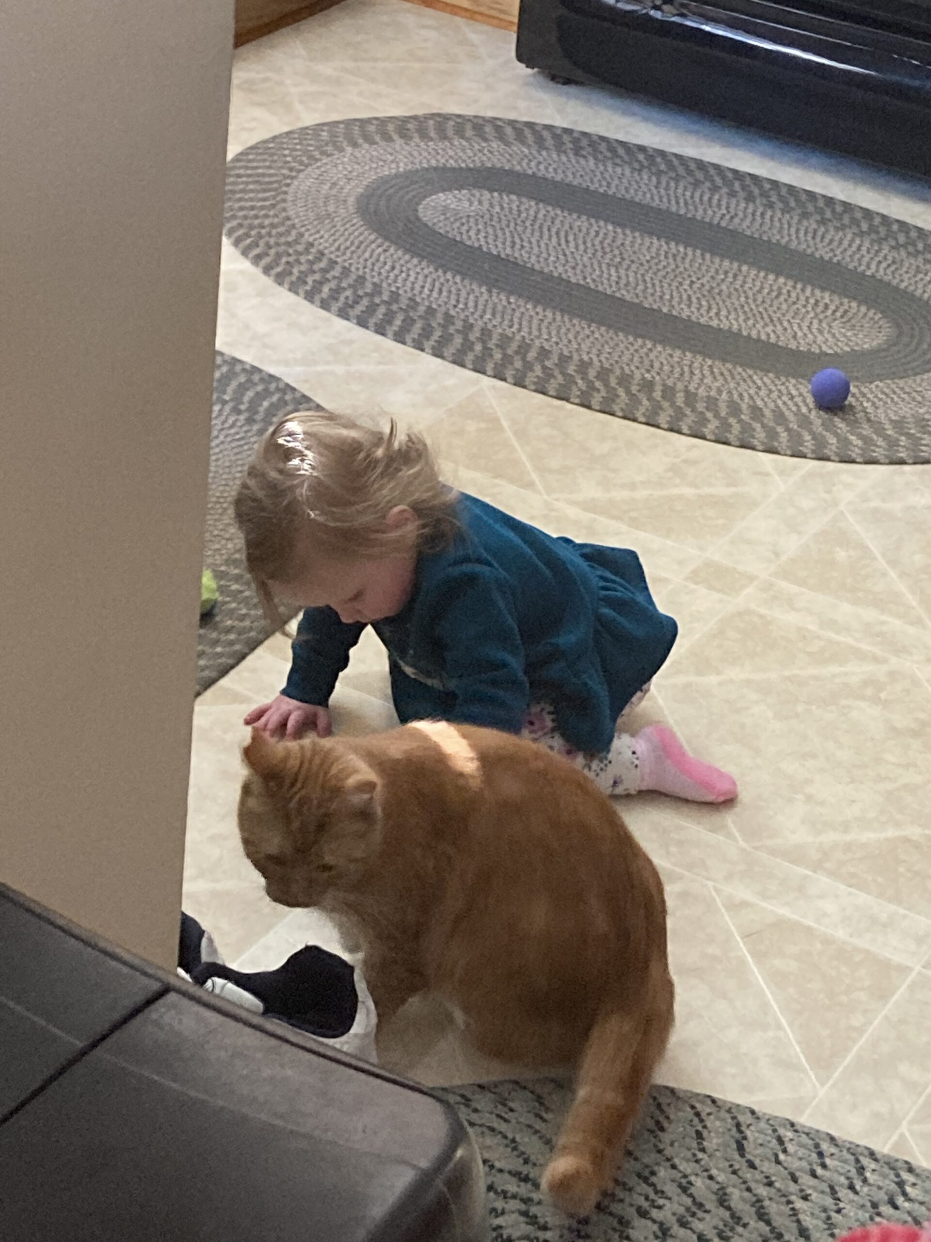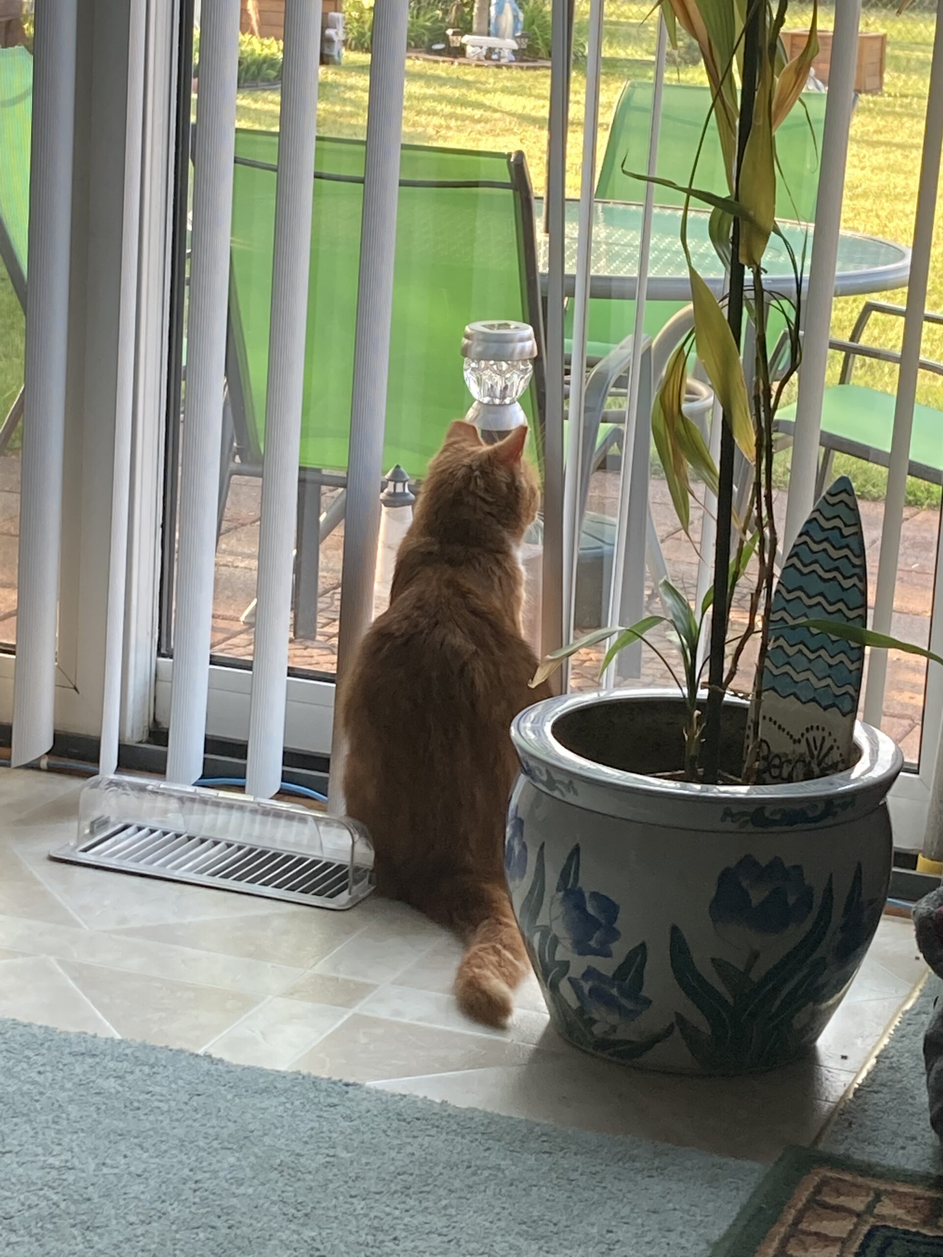 Pumpkin was a stray cat. We had just arrived home from driving to Florida to get my mom after having a stroke. Pumpkin would hang out in our driveway. I have her chicken and tuna. She devoured it like she hadn’t eaten in a long time. This kind of feeding went on for month. We originally thought that Pumpkin was a boy. She was very skittish. She wouldn’t let us get too close. We would prop our screen door open so she could come and go as she liked. Slowly, she would get closer and would rub against our legs and let us pet her. We had to keep the door open all the time. One night she jumped up on the couch next to me, lay down, and let me pet her. After several weeks of doing this and the weather getting colder, I asked my husband if she could stay in the house that night. He said no. A while later, my husband fell asleep in the recliner. I woke him up and told him to go to bed. The minute his foot hit the hallway, I looked at Pumpkin and said, “Guess who’s staying in the house tonight?” She stayed on the couch all night. She stayed every night during the winter months. She would go outside during the daytime and come back in the evening. I took her to the vet and found out our Pumpkin was a girl. I had her chipped. She was now mine. I am allergic to animals. For the past 5 1/2 years, I have been taking an allergy pill every day just so I can be with my Pumpkin. She would come inside in the evening and jump up on my lap. If I was playing on my iPad, she would do anything she could so that I couldn’t see what I was playing on it. Sometimes she would lay so high on my chest, that it looked like I was wearing her for a scarf. The other day, she didn’t come home in the morning to eat. I called for her over and over. We were backing out of our driveway; I looked behind the bushes in the front yard where she lays sometimes. I thought I saw her legs, so I pulled forward to get a better look. Sure enough, I saw her legs. I got out of the car and walked over to where she was. I called her name and she didn’t move. As I got closer, I could see a bunch of ants on her eyes. I yelled for my husband. I tapped her with them foot, she was stiff. This was so upsetting. I thought my baby girl would be around forever. We miss her so much. I keep wanting to get up and see if she’s waiting at the back door. Or, if she’s laying in the garden. Pumpkin girl, rest in peace. Some day we will be together again. We love you and miss you so much.