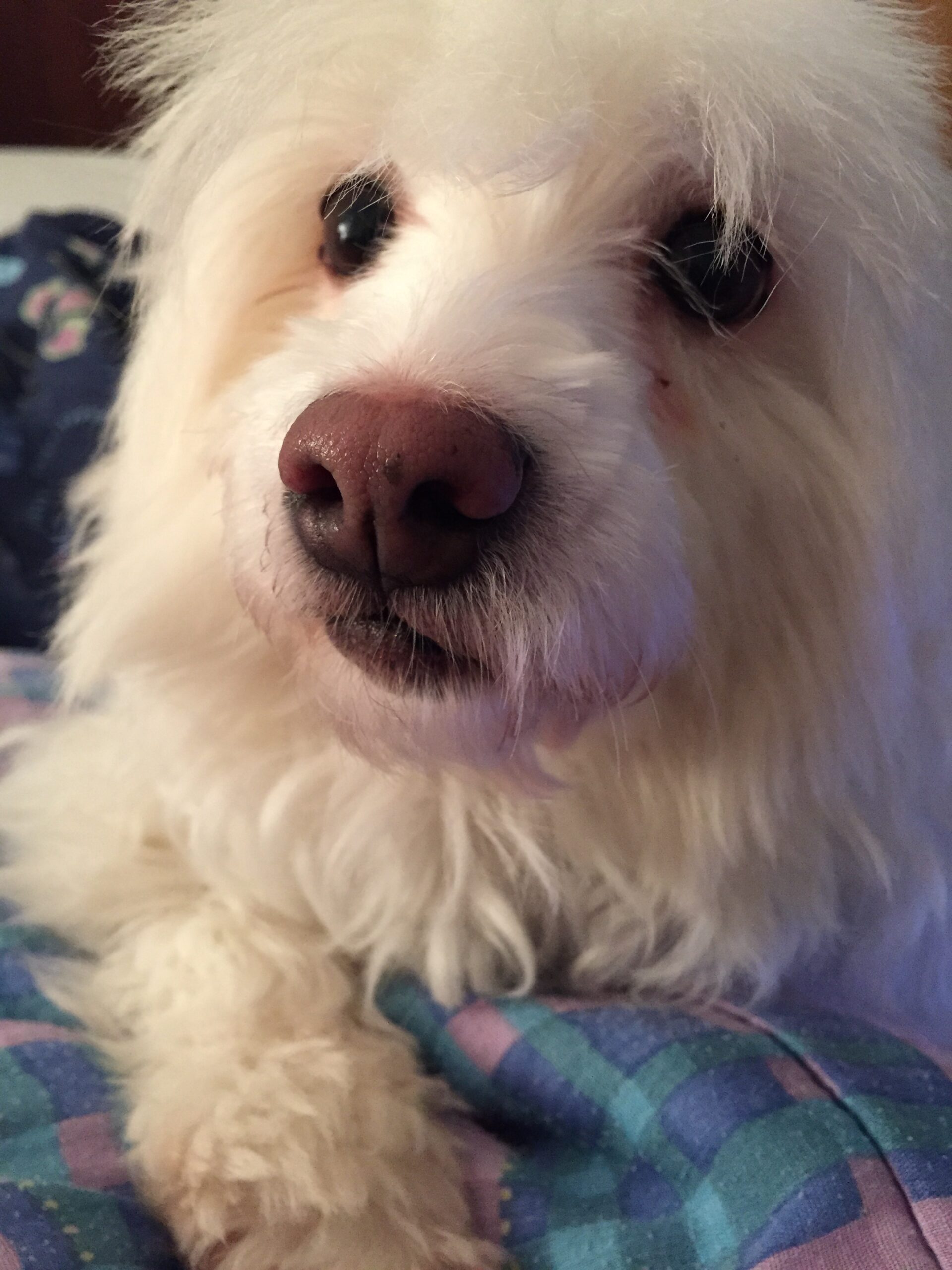 On 2012 somewhere in Kuwait, I had visited a friend who was rescuing dogs. They have around 15 dogs and 8 cats in house, that are currently waiting to get healthy and hopefully get adopted. All of the dogs are just roaming around the house. I was sitting in the corner of the sofa, when one of the dogs started sniffing me, I did not paid attention because I was busy talking to my friend. But this white little dog suddenly hop on my lap, and looked me in my eyes so I started petting her, who can resist? At that moment when another dog and cats tried to check me out, this white cute dog on my lap started snarling and getting protective. My friend noticed and she asked me, “are you interested in adopting anyone from the crew?” I was not honestly, because I was living alone that time and working most of the days. I said not sure, then asked her why? My friend said, “I believe that Nour this little baby on your lap have chosen you”. She said if dog chooses their human the bond is strong and she might get heart broken if I don’t take her, she told me give a try if it doesn’t work you know where we are. A simple visit to my friend that night, turned out to be the day I got rescued by this sweet little baby I never knew I needed.